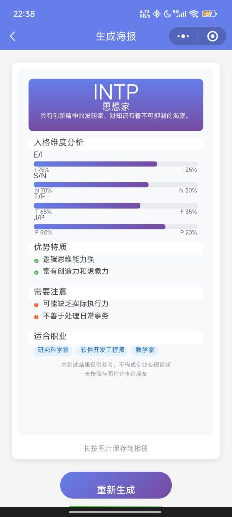 本文分享的是个人开发经验,MBTI测试结果仅供参考,不构成专业心理评估建议。