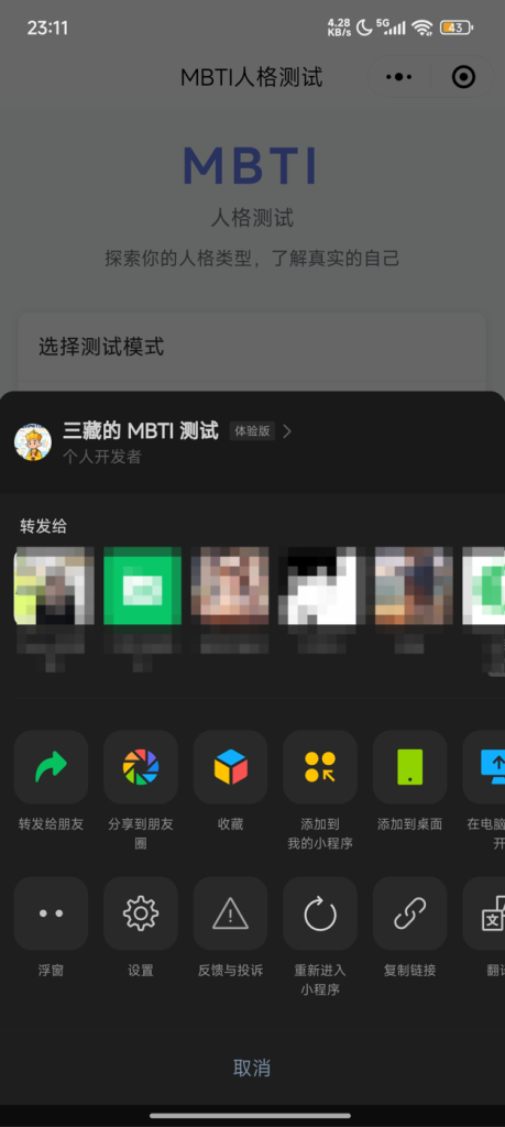 MBTI小程序升级记:从无法分享到联通的骚扰拦截!
